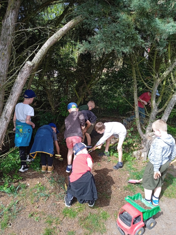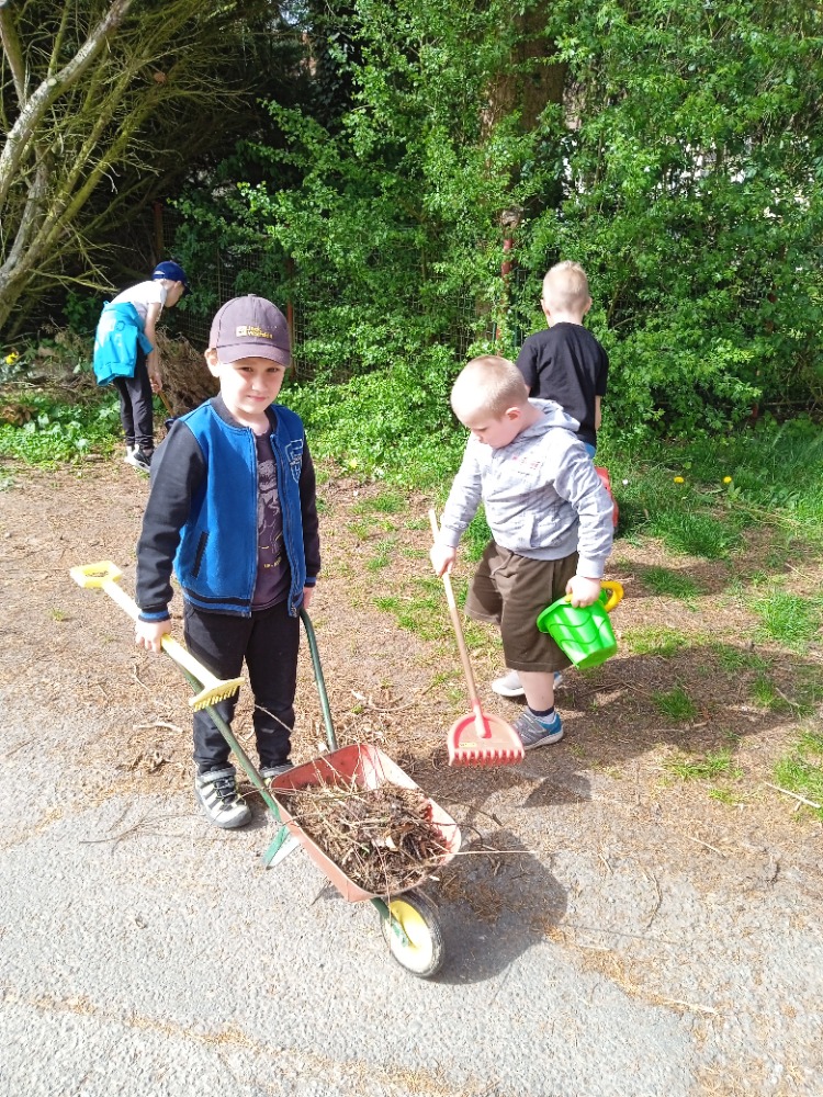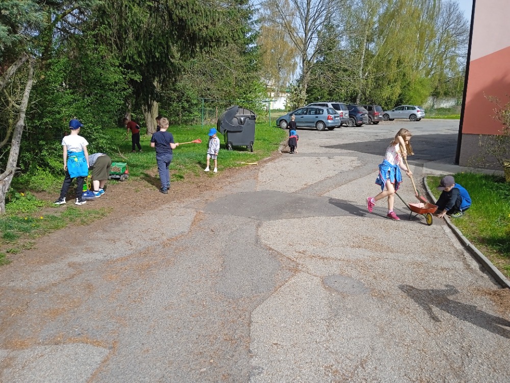 Uklízíme zahrádku.