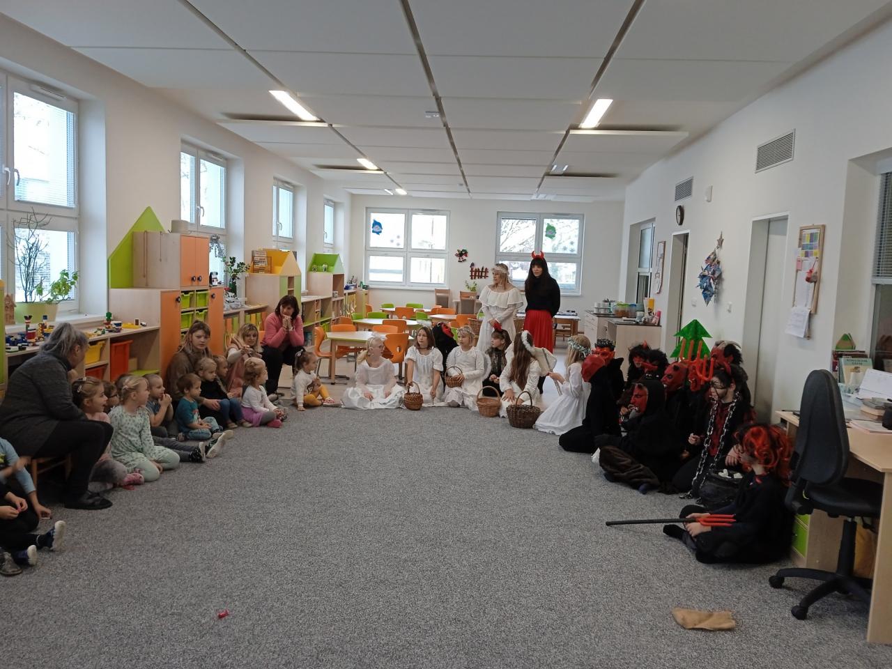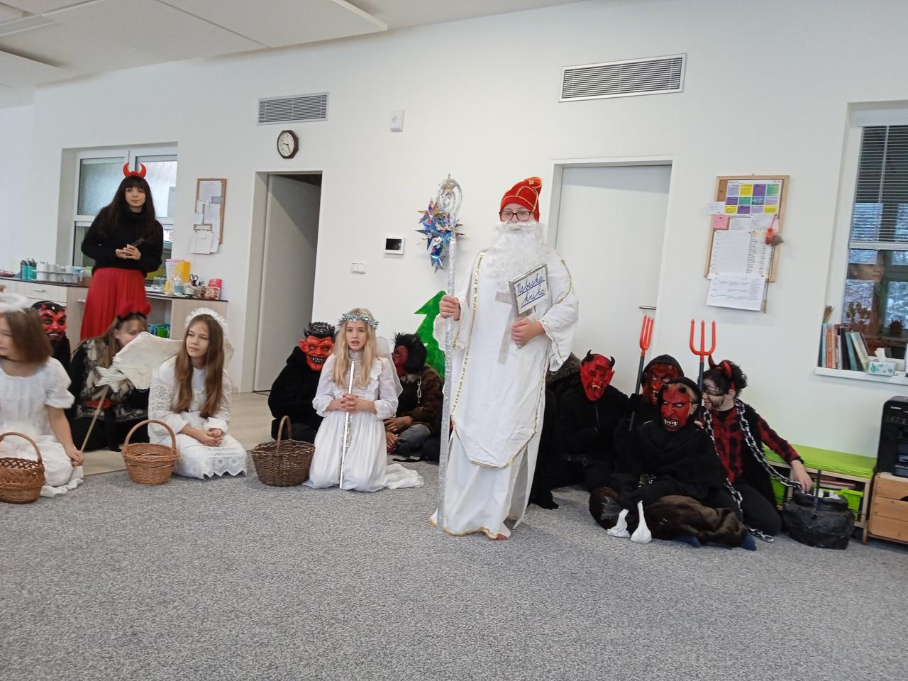 Do naší mateřinky dnes přišli čerti, andělé a Mikuláš.