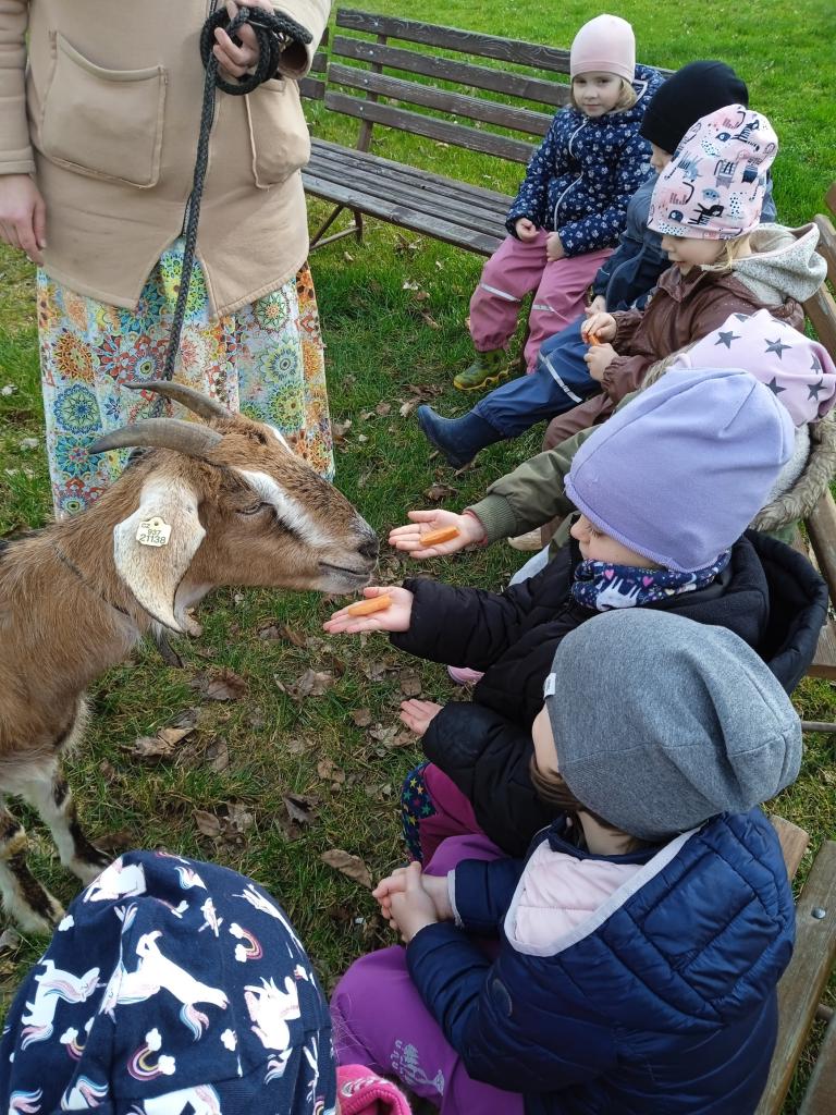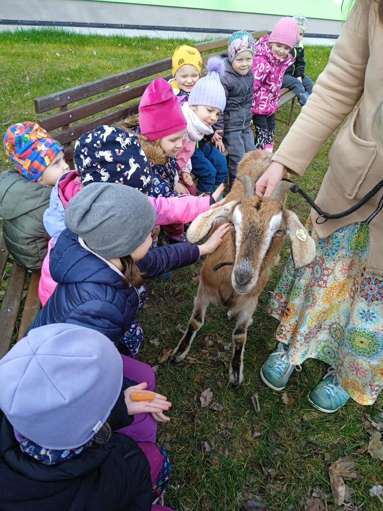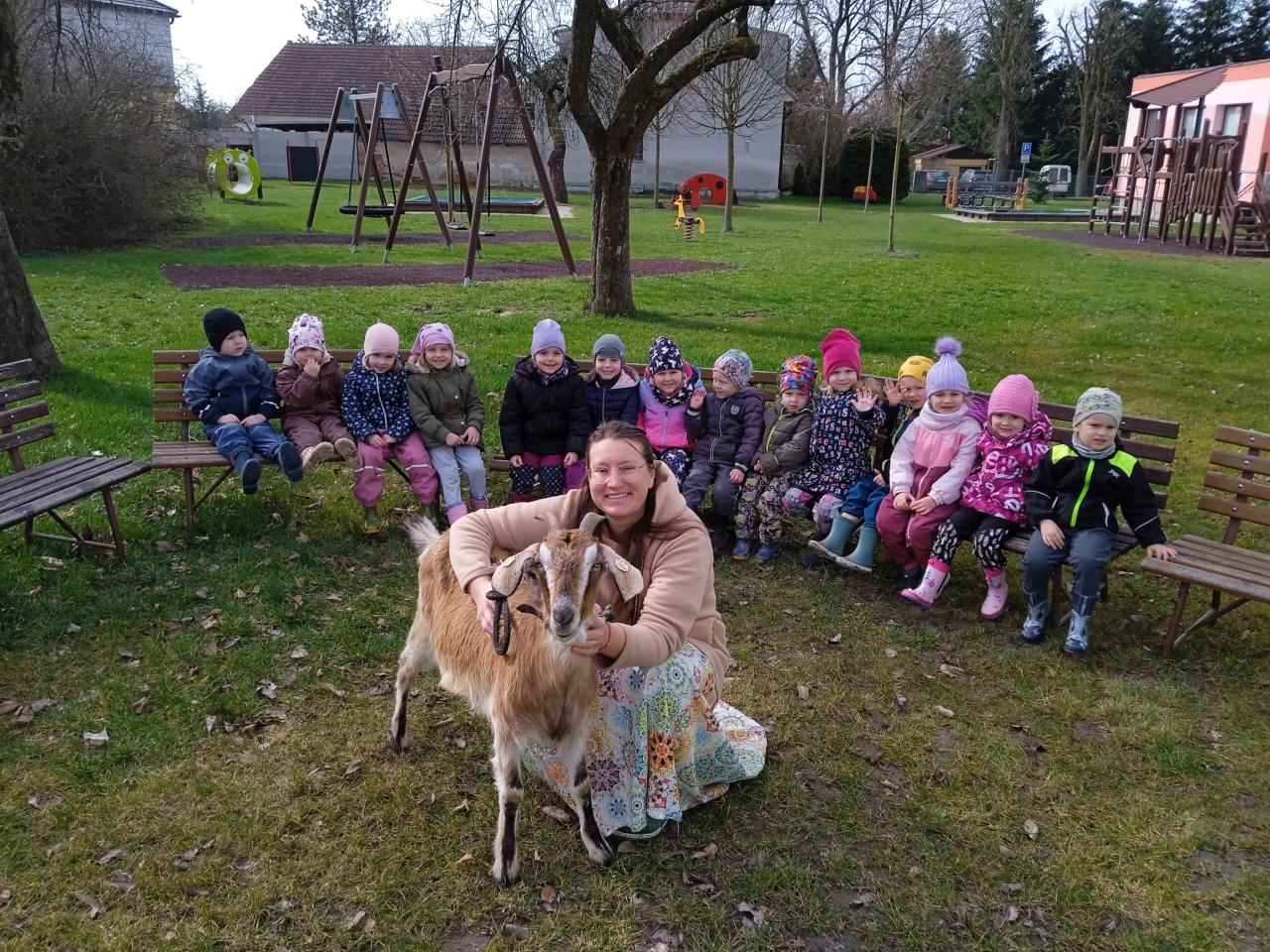 Do školky přišla za dětmi na návštěvu koza Bledulka z malé kozí farmy Borotín.
