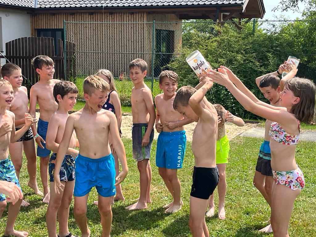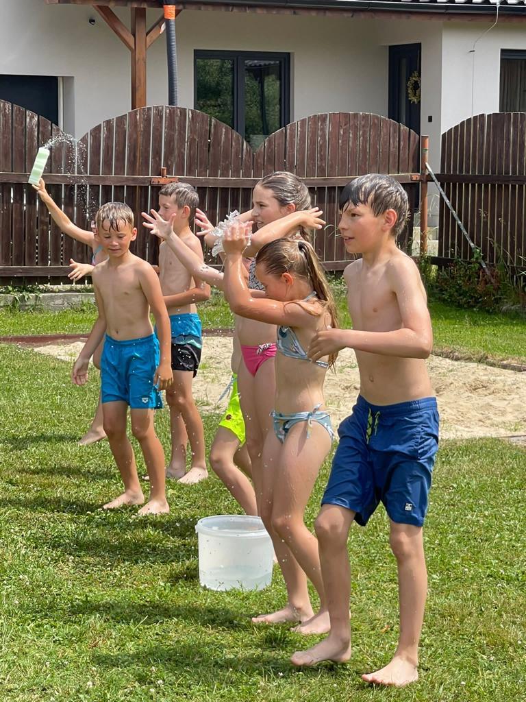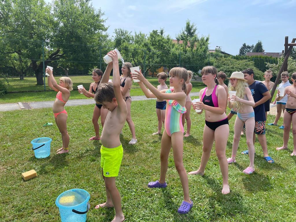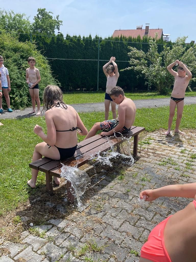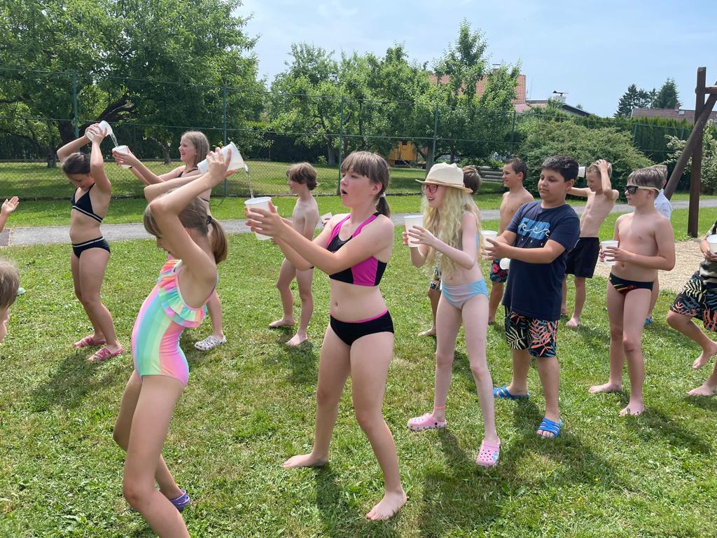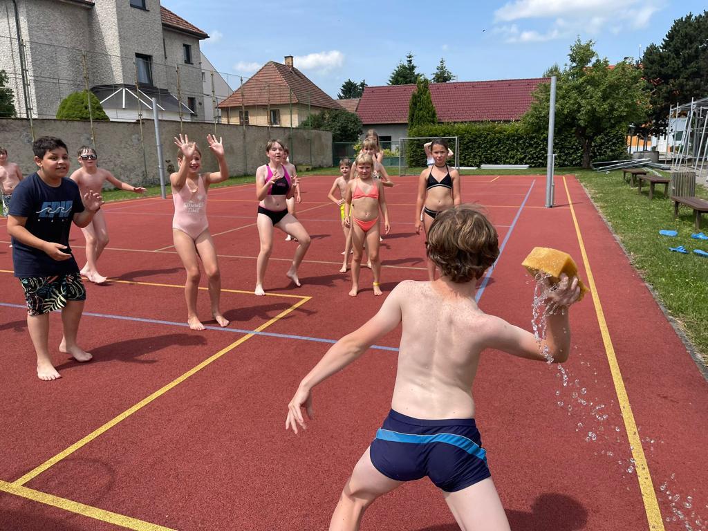 Horké počasí využili třeťáci a čtvrťáci k vodním hrám a soutěžím na zahradě školy.